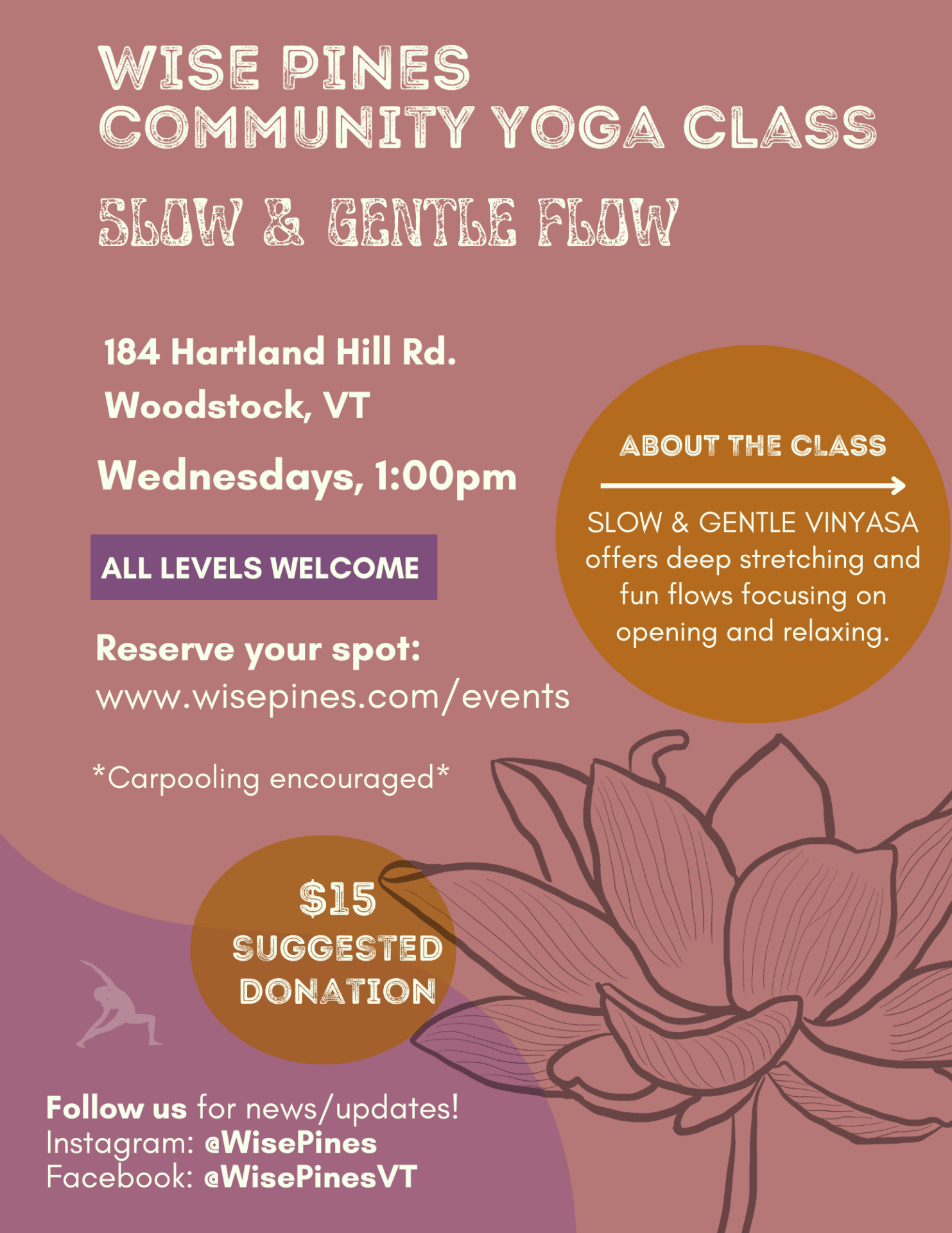 Note: When reserving a spot online, the system will automatically input $15. If you would like to donate any other amount, please do not continue to pay with card on stripe. Cash or venmo is accepted on site.